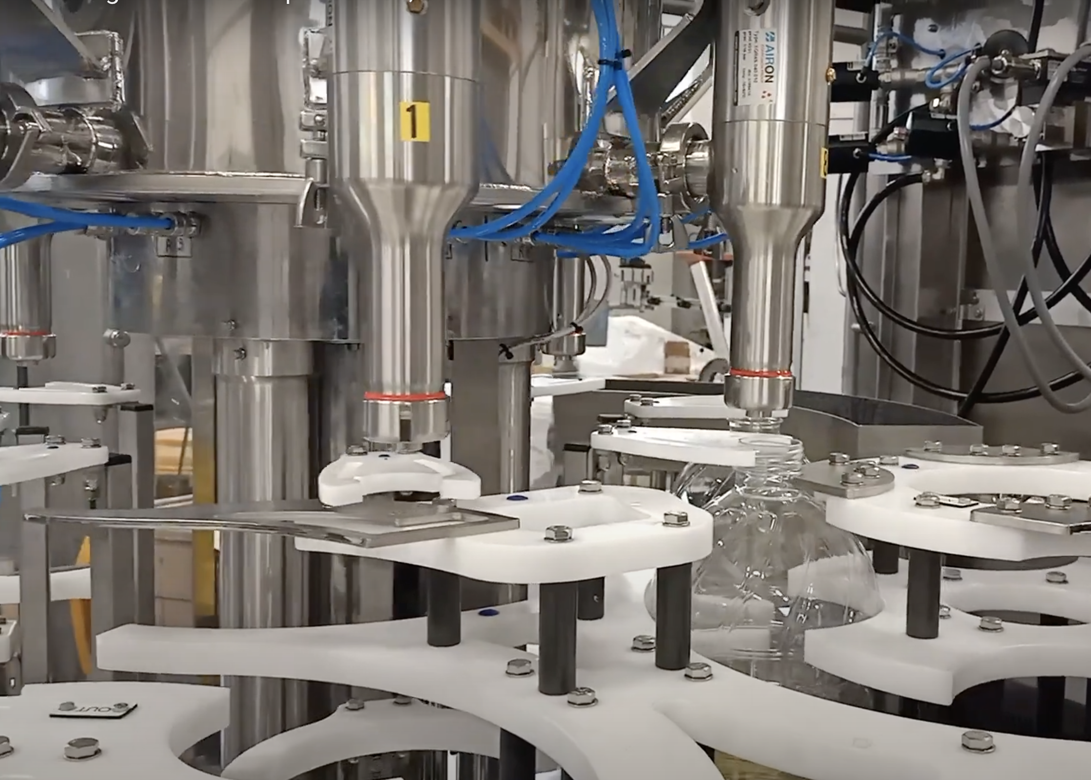 Each bottle is positioned into a filling station containing its own independent load cell. The filling valves fill with a laminar flow and without any spillage of product. The valves are located above the container and do not come in contact with the container during filling process. Rejves Machinery's Net Weight fillers reach an accuracy Sigma1 ± 1gr on 1.000gr, which is very important to save each drop of your product without any waste.